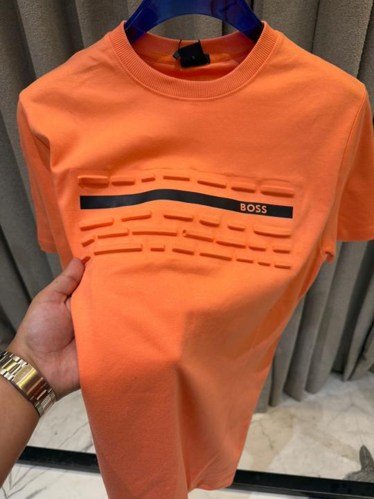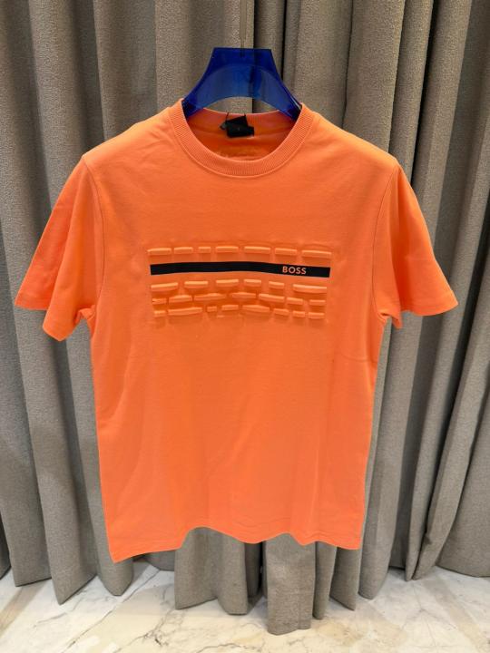 Boss Middle Brand Embossed Print Round Neck T-shirt Orange