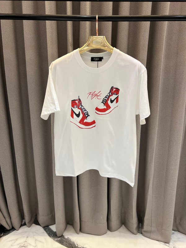 Fend_i Jordan Shoe print Round Neck T-shirt White