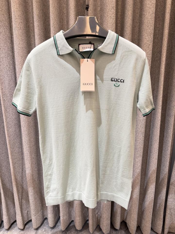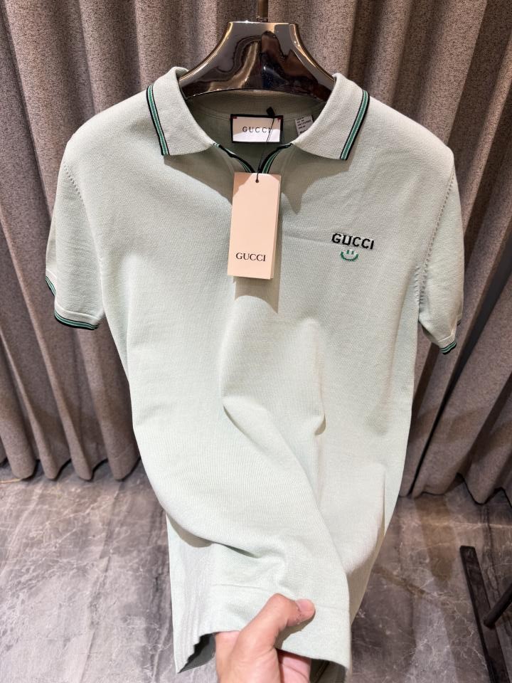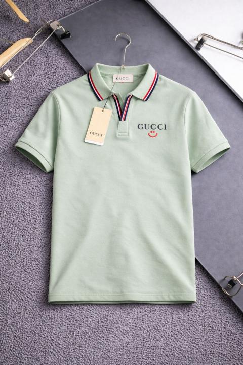 GUCC_i LIGHT GREEN LOGO PREMIUM QUALITY KNITTED LYCRA FABRIC POLO TSHIRT