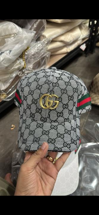 Gucci_Grey_GG_Stripes_Monogram_Front_Logo_Premium_Unisex_Cap_With_Safety_Box