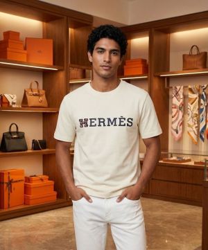 HERMES CREAM BLACK PRINTED ROUND NECK OVERSIZED TSHIRT STORE ARTICLE