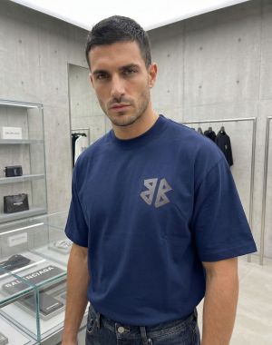 Balnciag_A Dark blue premium Brown printed round neck oversized tshirt