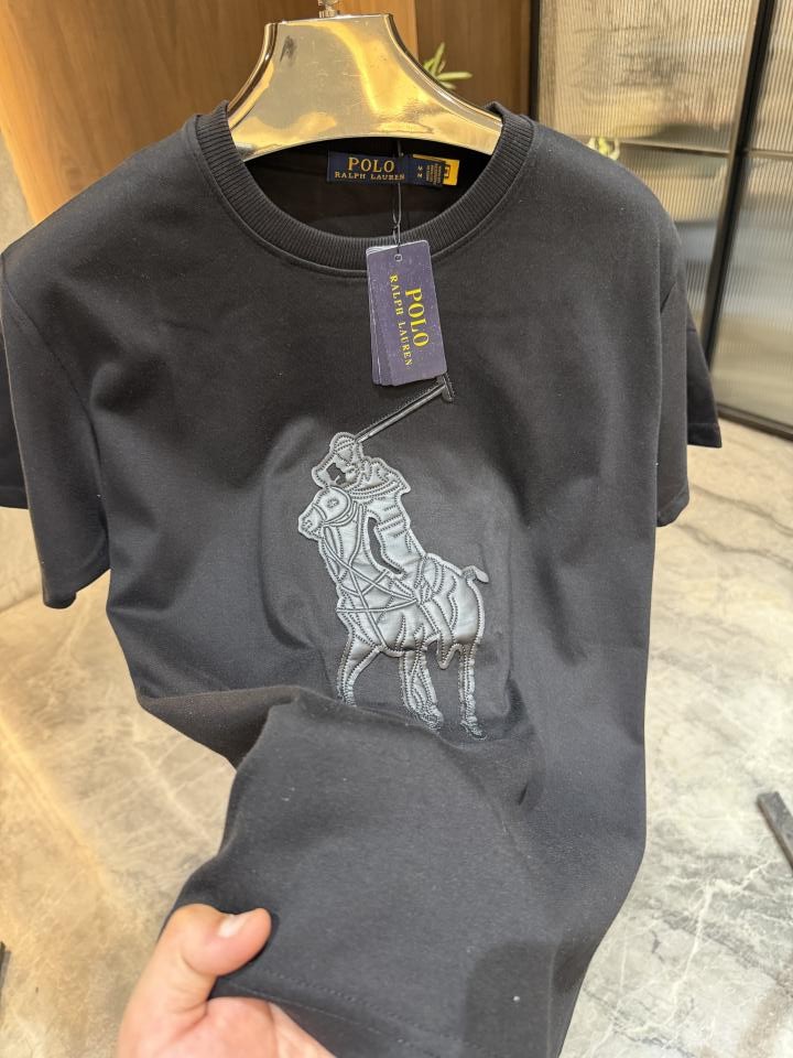 RALP_H LAUREN BLACK EMBOSSED PREMIUM ROUND NECK TSHIRT STORE ARTICLE