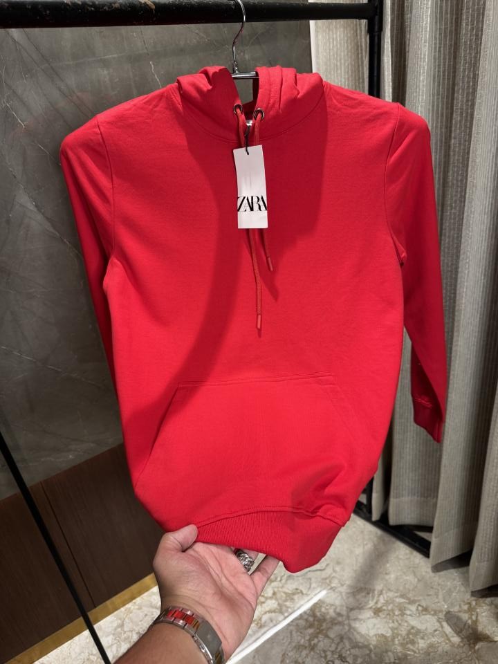 Zar_a Men Red Plain Hoodie